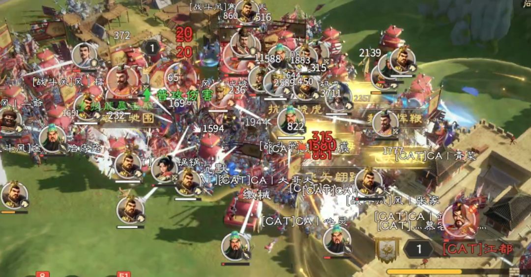 江都数度易主,关隘攻防你来我往,10:31轮到【CAT】攻城,起初江都城墙耐久掉得飞快,可【战斗风】绷住了最后一根弦,疯狂补兵竟然死守住了江都!反而是【CAT】后继无力,整整一个小时都未能前进一步,【战斗风】成功守城,江都大战告一段落。
