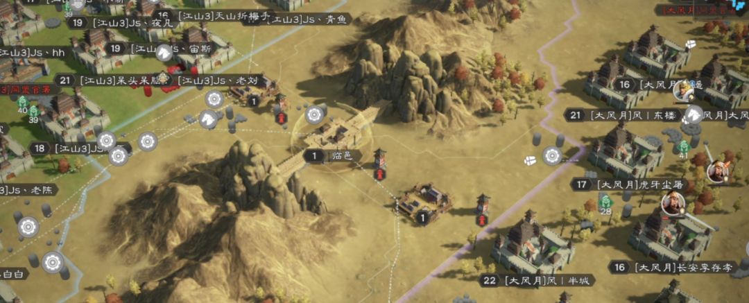 而【江山3】与【大风月】在临邑展开长时间拉锯战,21:25【江山3】对守城的【大风月】发起冲击,历时14分钟,临邑落入【江山3】之手,而【大风月】并未再次建起同盟官署反攻。