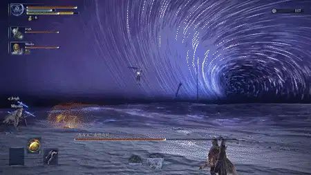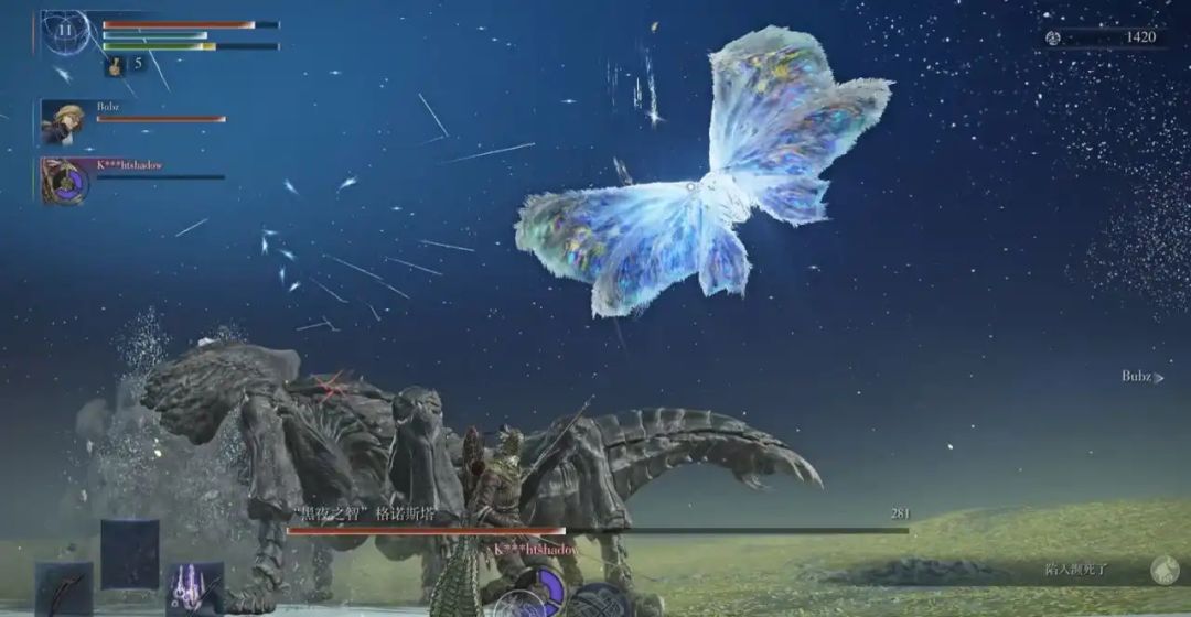《黑》的老BOSS与原作相比要简单许多,主要得益于《法环》作为单机游戏,其BOSS技能多为针对单人玩家,所以在三人协同作战时,总会有人处在舒服的输出环境中打出高额伤害。