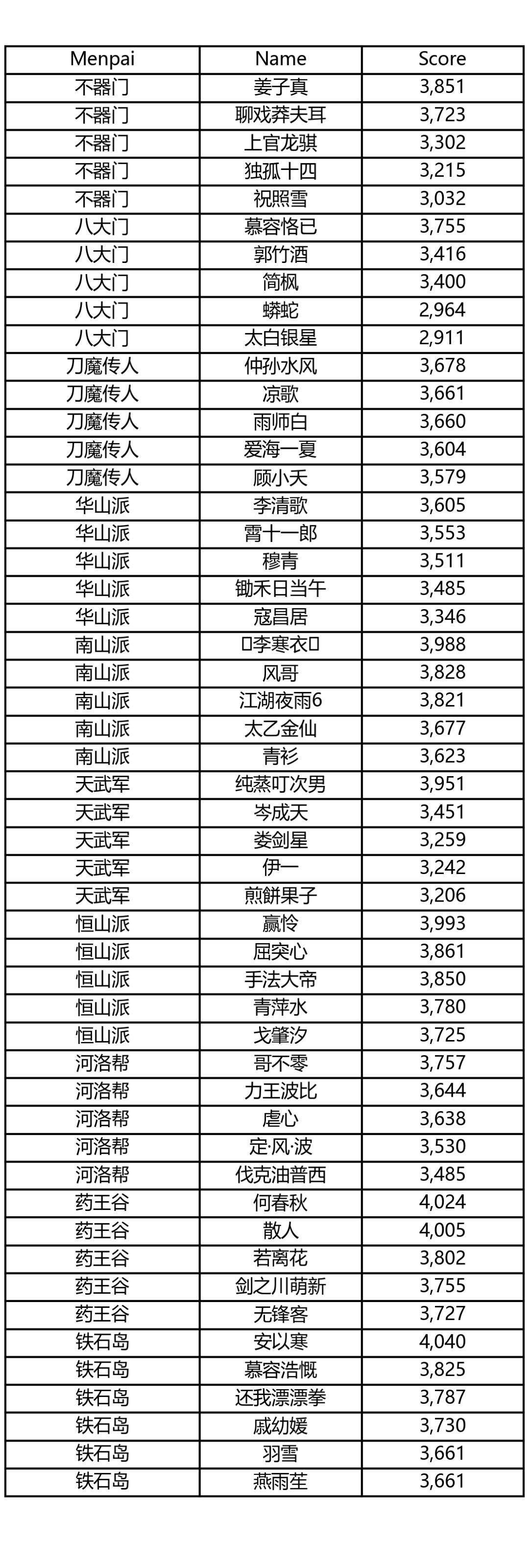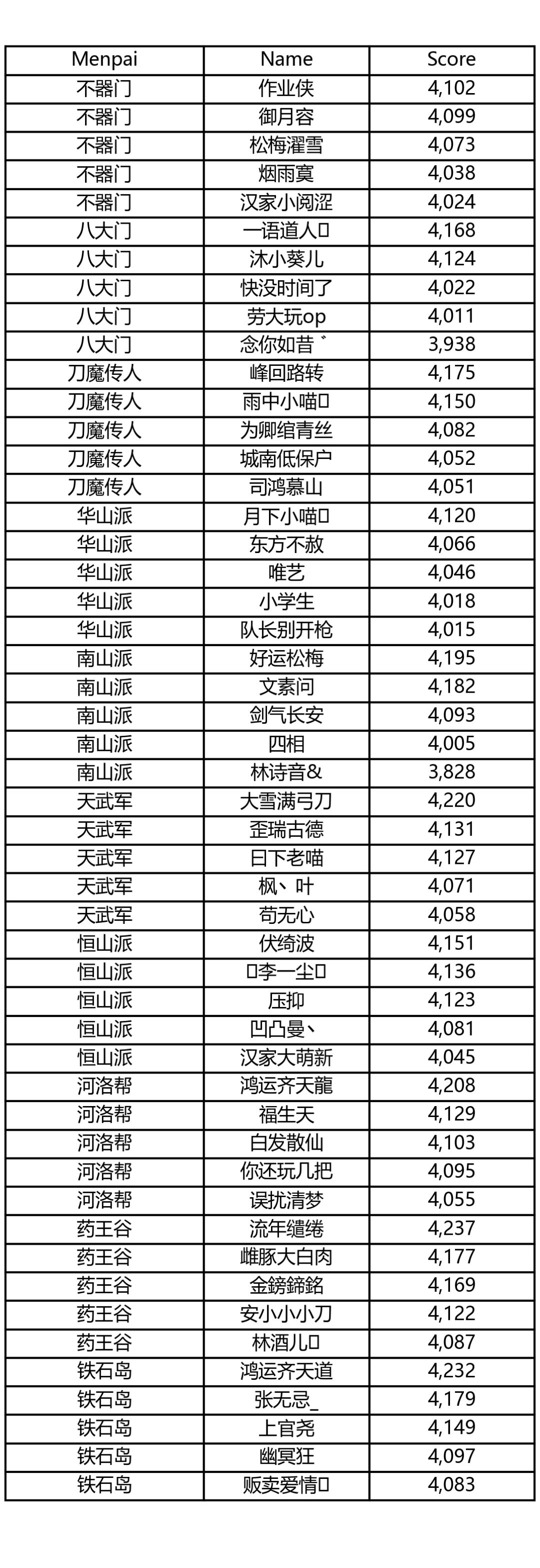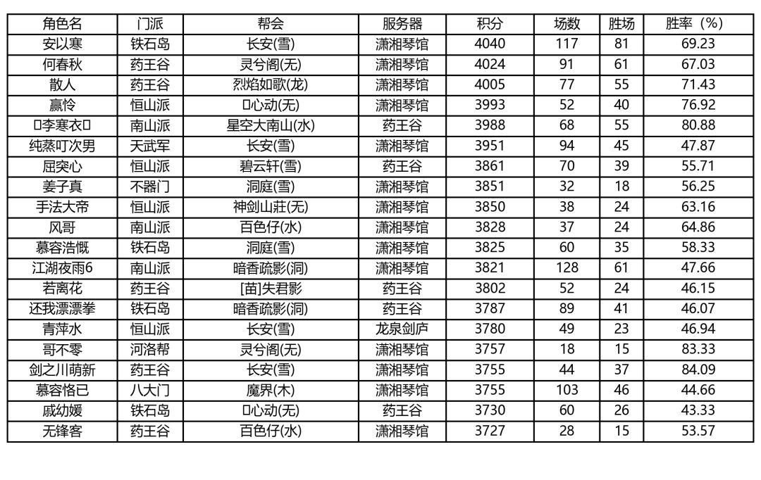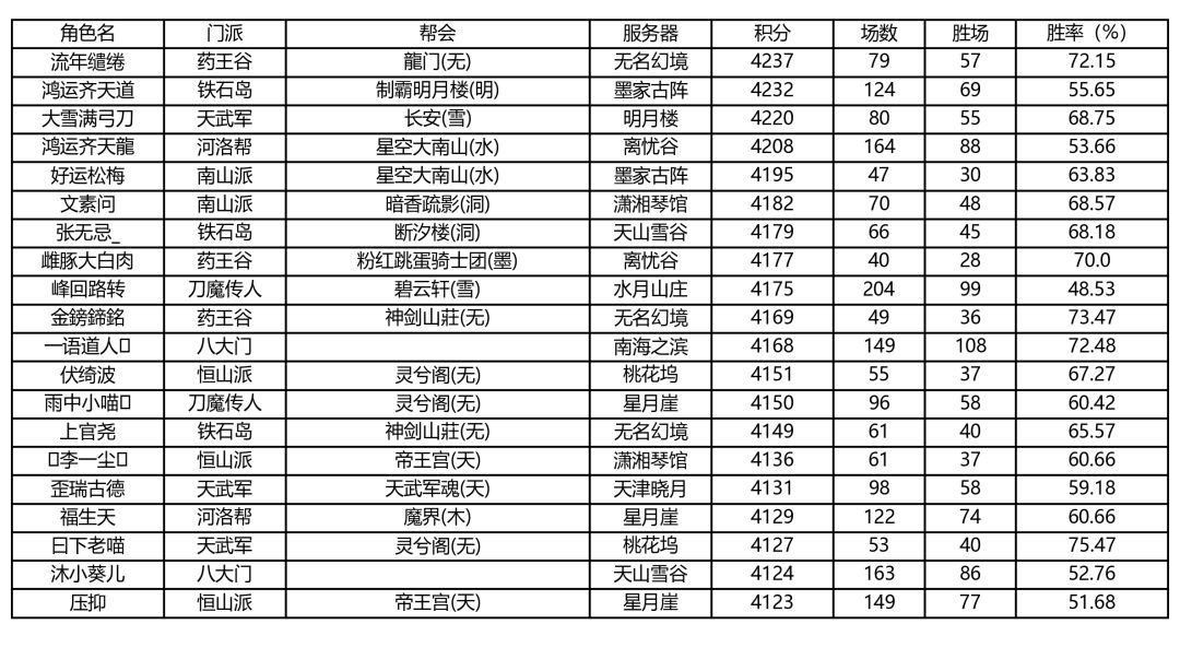 新秀论剑各门派前五