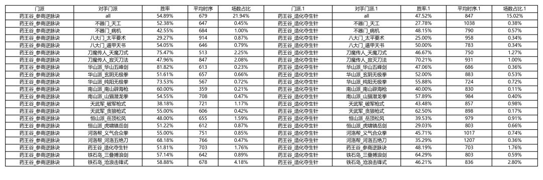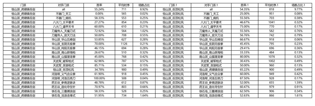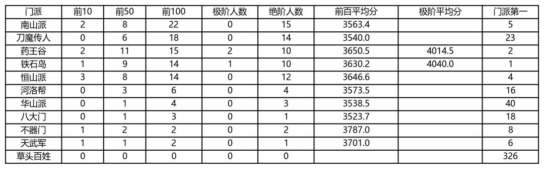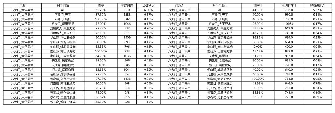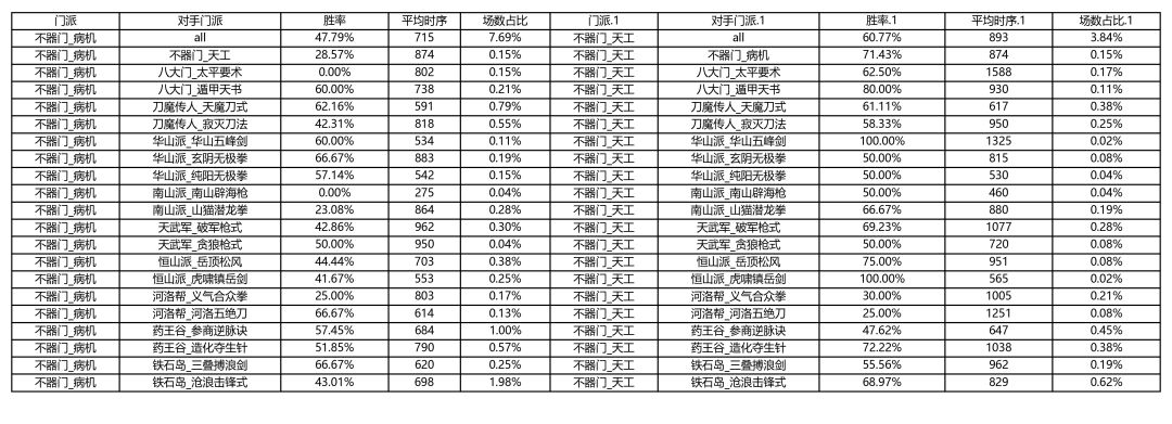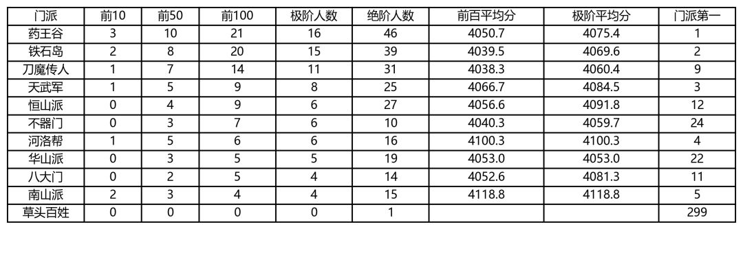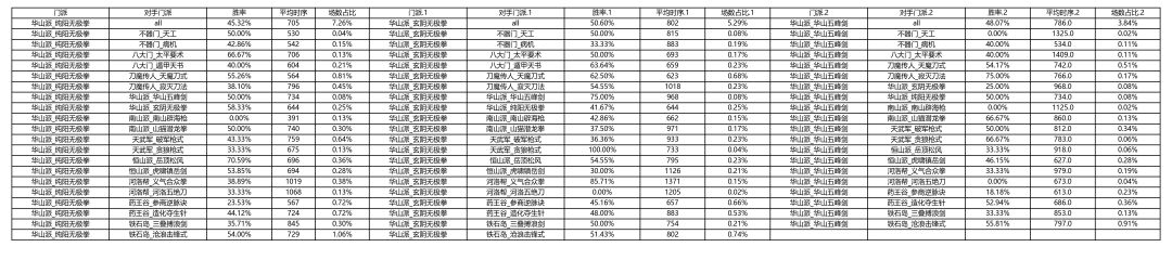 各大门派胜率