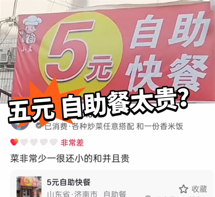 我就想知道这五块钱自助”,和“菜非常少还小并且贵”是怎么联系上的?