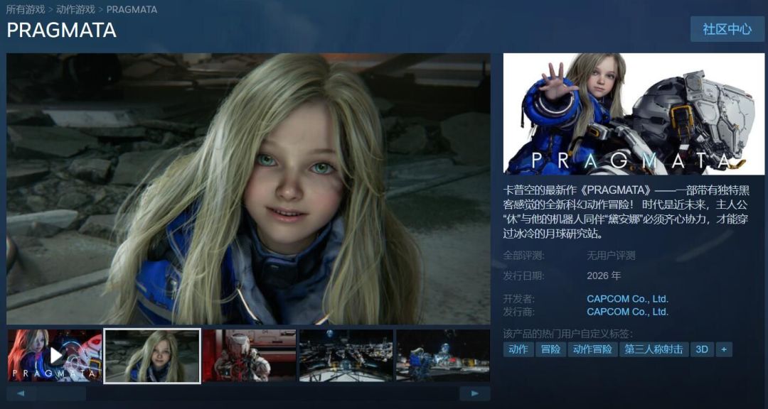 )。 然而这一跳票就是3年多,本以为石沉大海。却在2025年6月有了最新的进展,游戏官方公布了最新的宣传PV和大致的发布日期。果不其然,再一次赢得了玩家的青睐,冷饭之王卡普空终于想起了这部新作,话说这类陪伴型游戏的受众真的多,比如火山的女儿、吃人的大舅以及米国末日1(这游戏只有1部,只有1部!!!)等,而且这次还有全程中文语音,和可爱萝莉女儿一起冒险,简直不要太棒ヾ(✿゚▽゚)ノ。#今天游戏圈发生了啥 #Pragmata #卡普空 #steam游戏 #游戏资讯