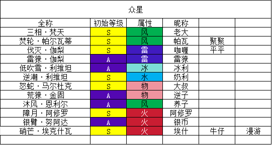 首先声明一下 这个帖子我会随着版本慢慢更新 角色昵称合辑 当然遗漏的欢迎各位玩家补充