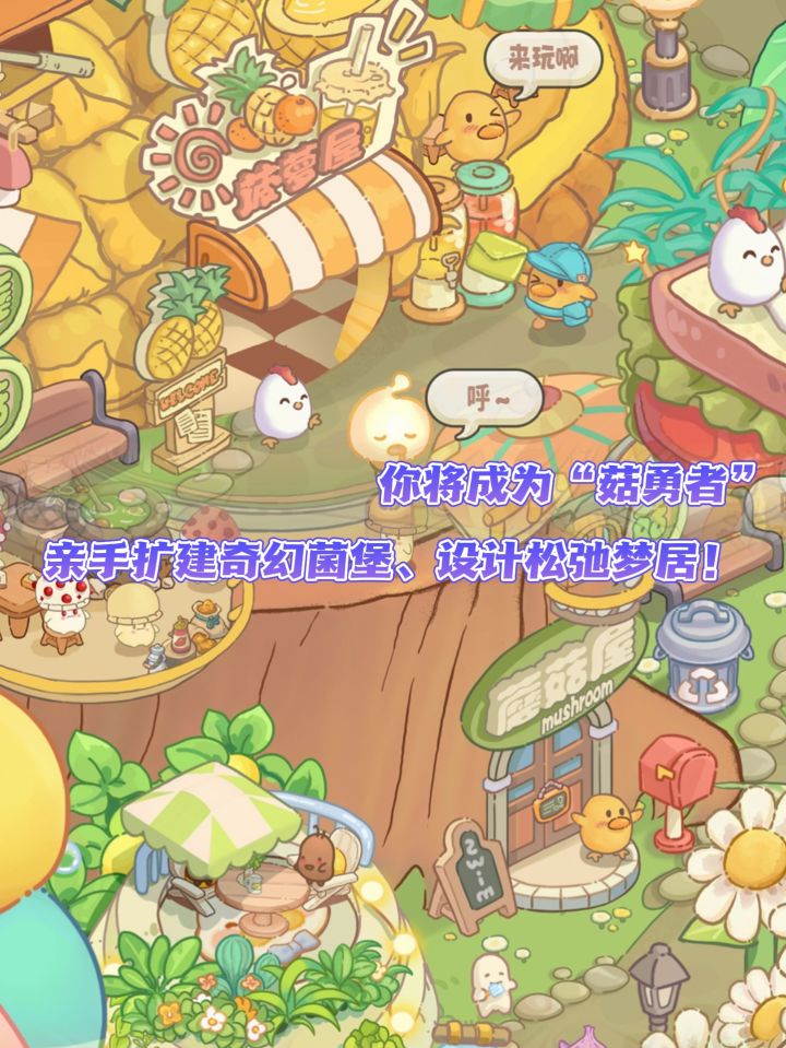 欢迎加入“没有甲醛、没有KPI”的【蘑菇装修同好会】,你将成为“菇勇者”,亲手扩建奇幻菌堡、设计松弛梦居!
