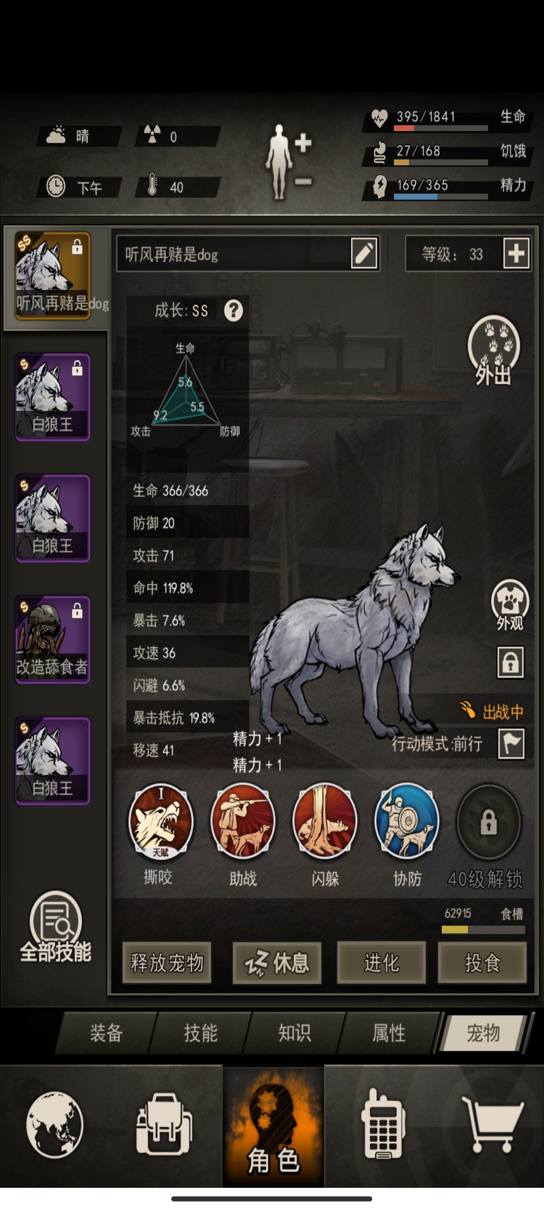 你没有听错,原因就是我的白狼咬了虫母一口或者两口,纯狗运,建议大家药前有百开或者高精通再去尝试,还有因为吃了丸子这些料理,大家吃的只带巧克力罐头