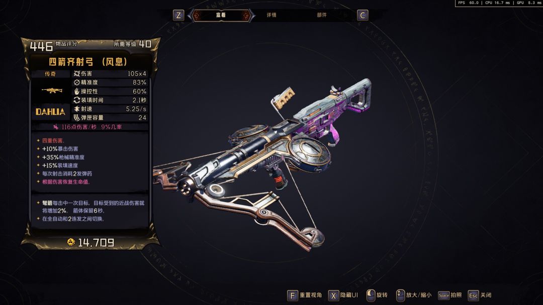 拥有独特词缀组合,本质上和蓝色区别不大,但词条更多的同时机制给的也更好,如果只是想把游戏打通关,不打算后期刷混沌副本的,紫色品质武器将会是你使用最频繁的枪。