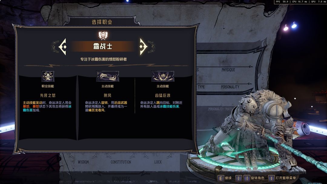 控场尚可,视觉特效华丽,近战生存差,对于前期来说BOSS战乏力,算是我觉得最不适合开荒的职业,不过上限还是相当高的,玩好了就是后期最强近战特效流。核心机制:冰霜旋风:技能“煞风”贴身AOE,配合“破冰者”对减速敌人增伤。杀戮减CD:被动“逝者之血”加快技能循环。