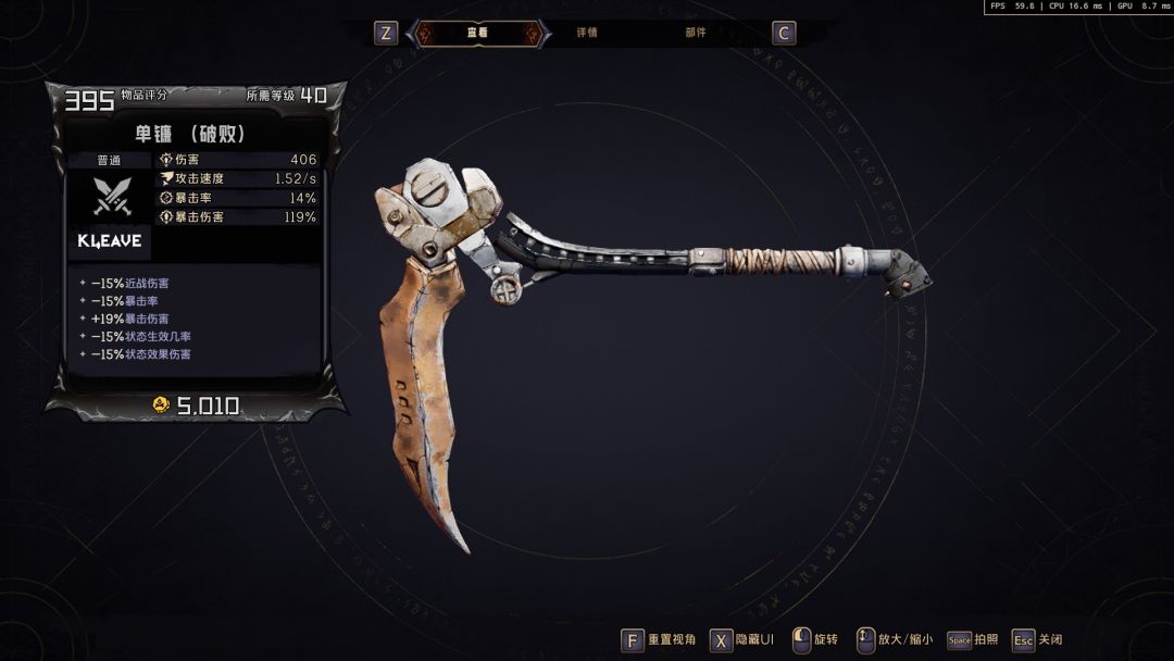 本作跟以往作品一样将武器装备戒饰分为“普通品质,罕见品质,稀有品质,史诗品质,传奇品质”对应着武器背后的背板颜色。品质分级,这里我们用枪械武器来举例子,其他的包括防具以及魔法书,戒指等都是同理的,不用担心。