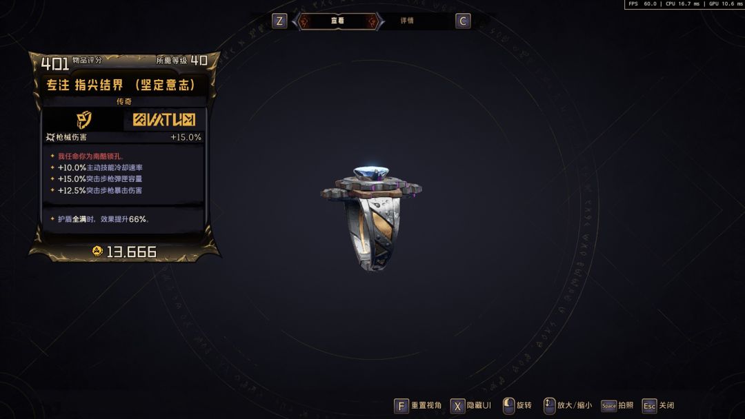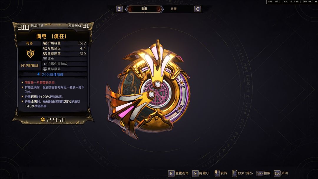 护盾光看数值选就完事了,我这个其实数值就不太够看,但是机制比较好,伤害很高,所以刷支线的时候都带着。