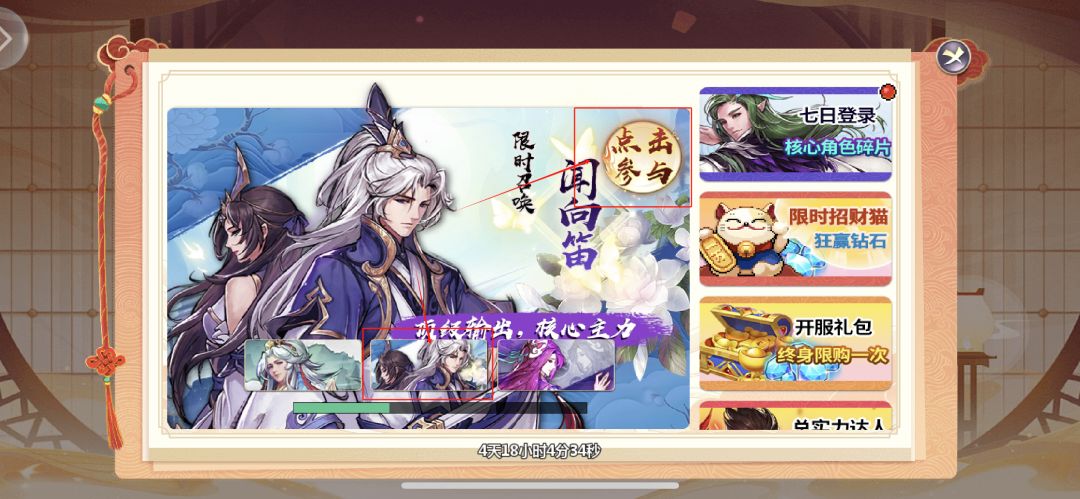 另外刚入坑没过新手指引一般是没办法立刻抽奖的,但是可以通过右上角的开服盛典找到闻向笛的限时活动页跳转进去直接抽完,再用强力角色去过剧情,会快很多