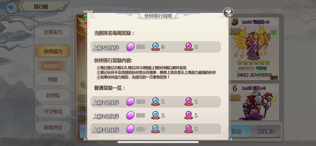 前期拉战力主要是通过提升伙伴的等级和阶位,