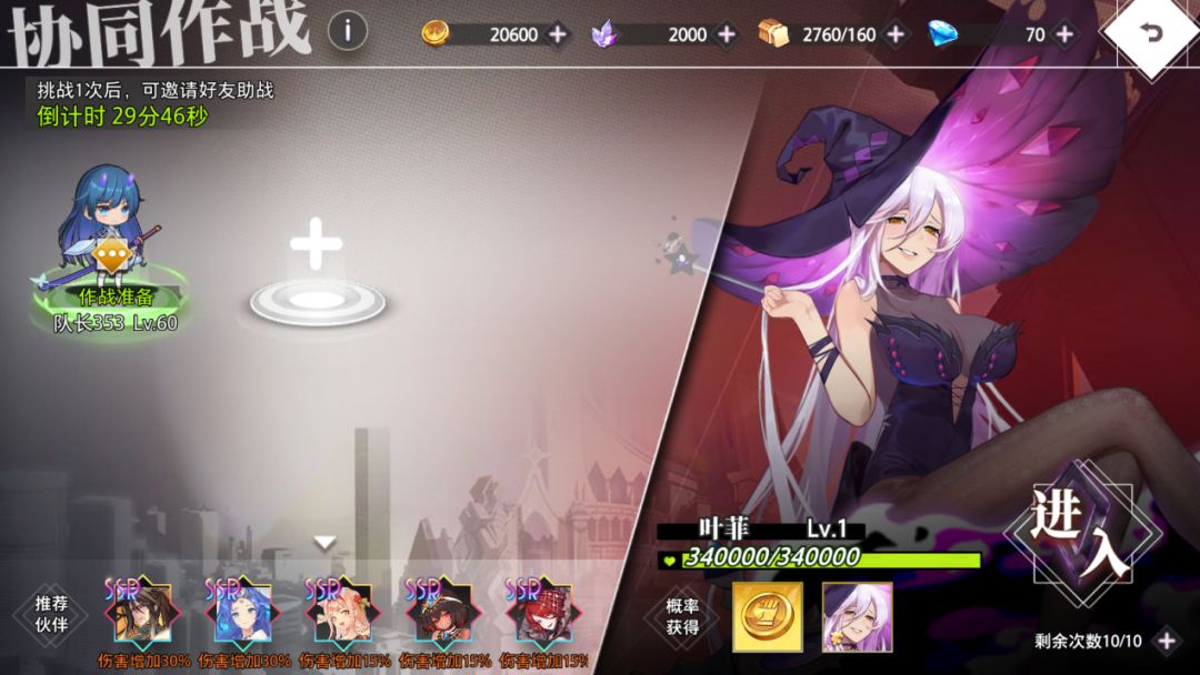 【协同作战 BOSS共斗】 叶菲挑战开启