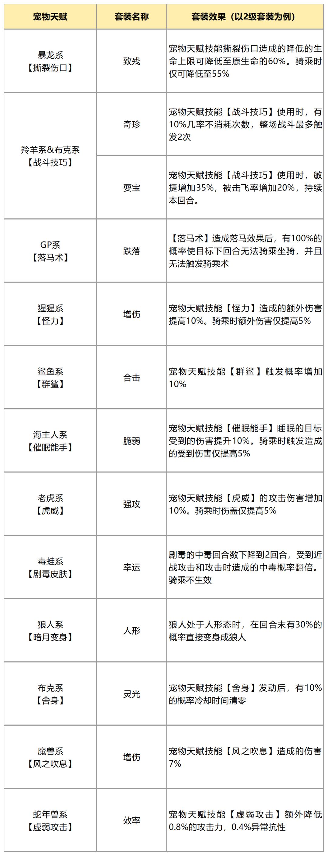 除了新增了宠装套装外,本次更新还将对以下宠物天赋进行调整: