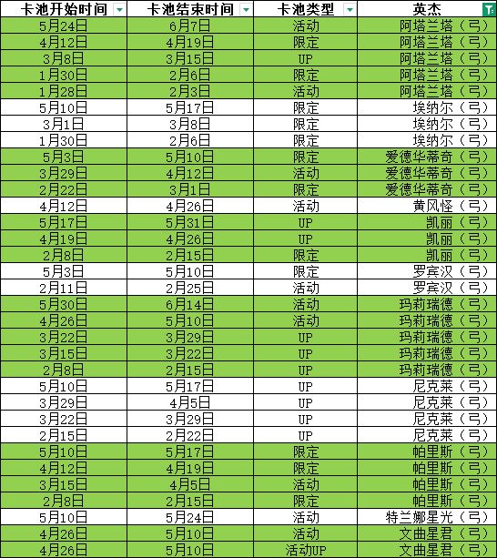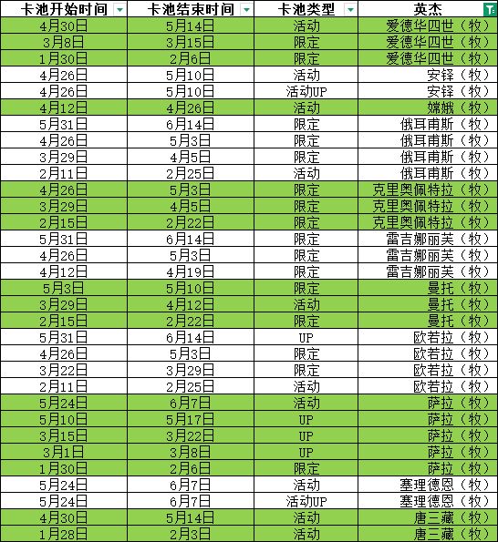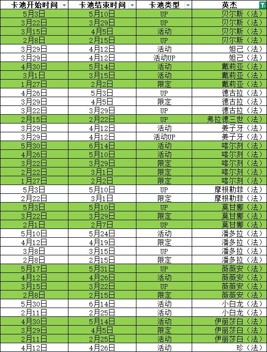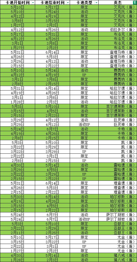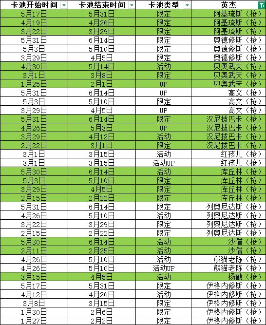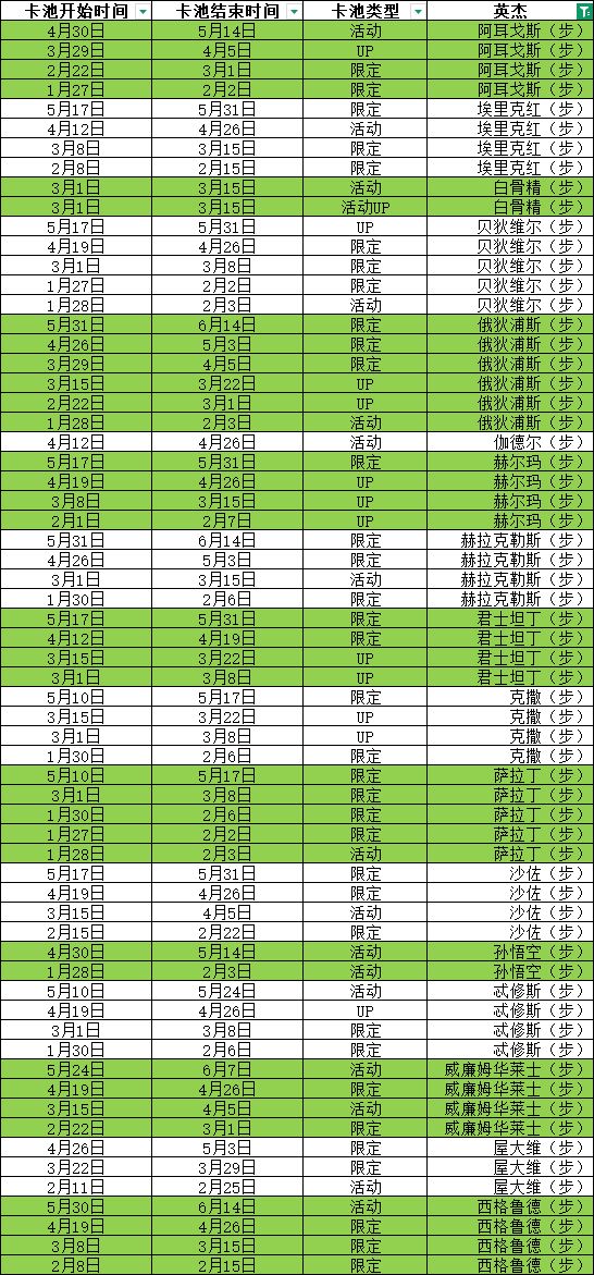听取部分网友的建议,整理了所有英杰的卡池更新数据,希望对你有用!