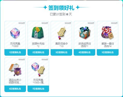 第七天:无何灵晶*1000+高级召唤令*10