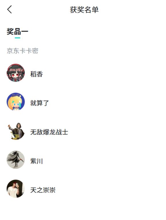 以下为本期活动获奖名单: