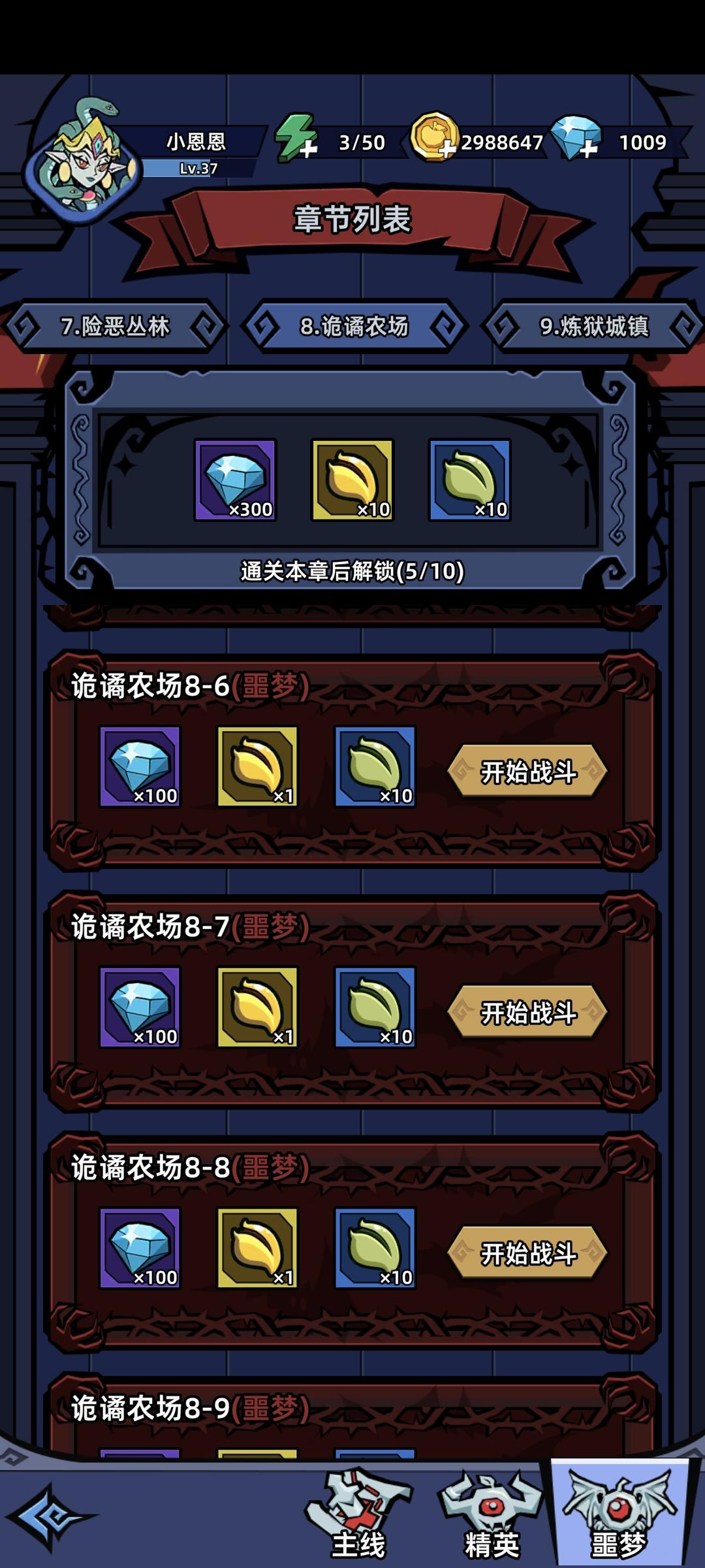 现在每天的关卡基本上寸步难行,每天就是上去做日常然后一天都没东西可以玩,唯独有空的时候可能试试挑战和噩梦,不停地刷初始果实刷到适合的才开局,输了之后又不停重复刷。我相信这游戏所有玩家都一样,每次都在刷初始,既然事实都是玩家要刷开局,何必不让玩家舒服一点,直接给开局自选,让大家玩起来愉快一些,还可以多挑战几次,减少刷开局的垃圾时间,所以我真心建议开局果实变成自选,哪怕势利一点把这个功能放在月卡里也行,起码让大家多一个选择