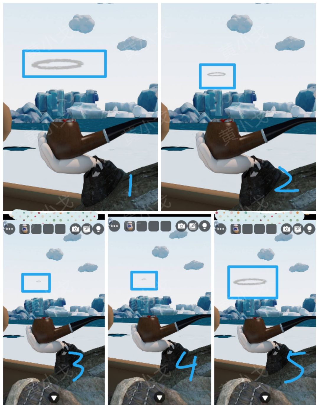 24.点击右侧木箱上的密码锁,根据上面的雪茄图案提示,结合[北极熊]场景烟圈大小顺序,按顺序按下按钮