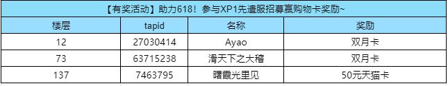 【有奖活动】助力618!参与XP1先遣服招募赢购物卡奖励~