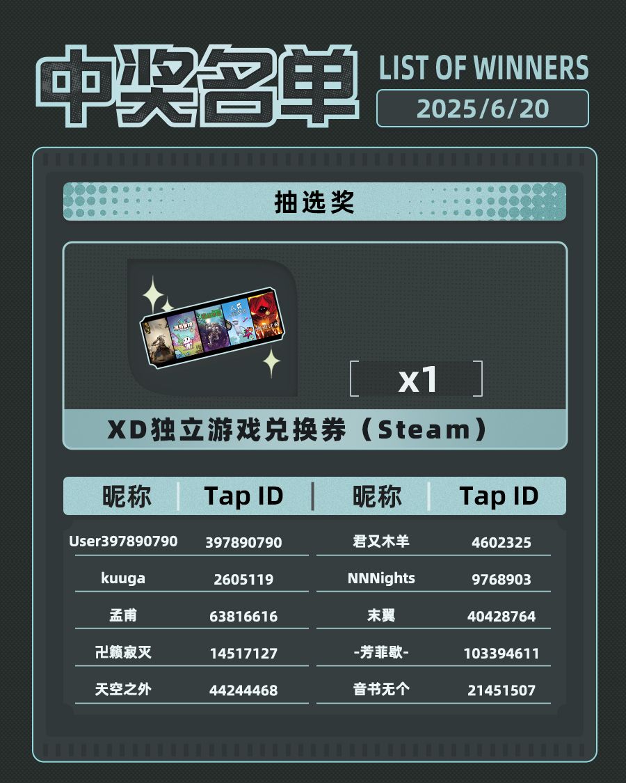 我们会在6月20日,评论区内抽10位参与愿望单抽奖的玩家,赠送XD独立游戏兑换券(Steam)一张。