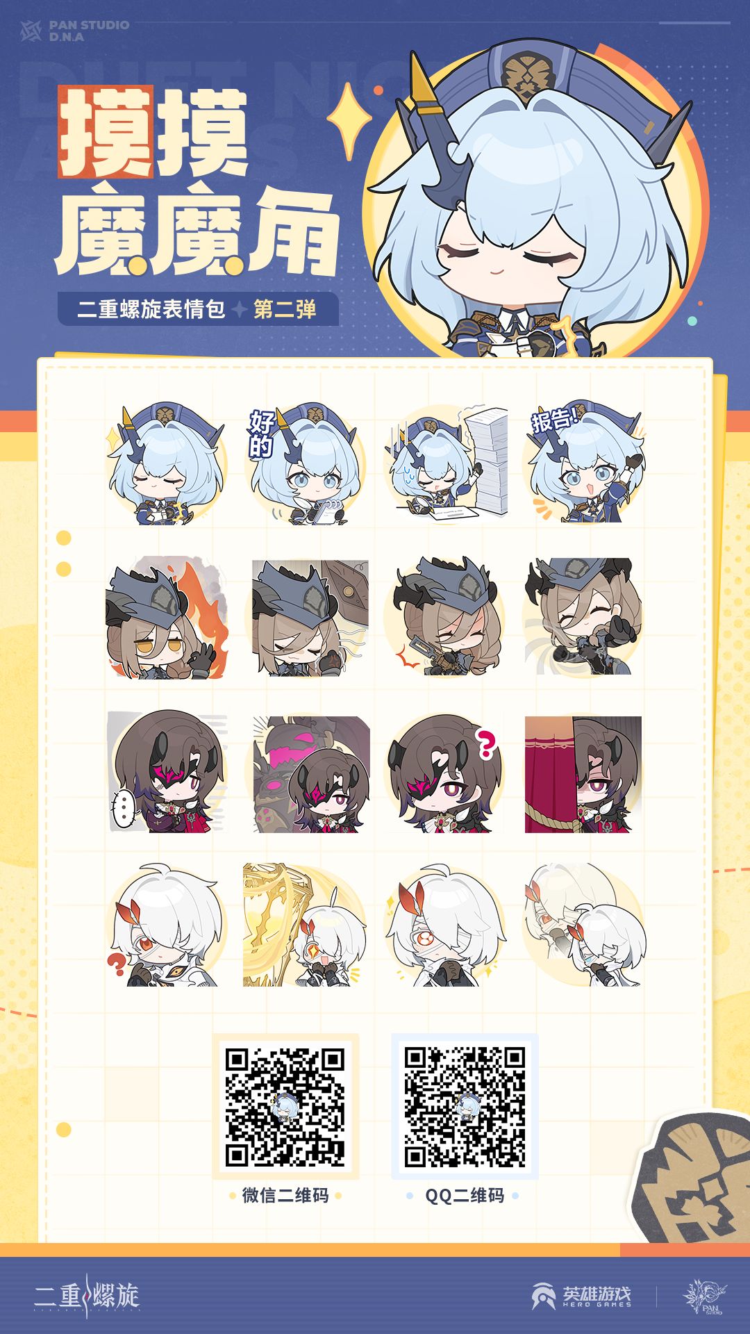 ✦欢迎各位狩月人点击图片扫码,或前往「微信表情包商城」搜索「二重螺旋摸魔角2」,前往「QQ表情包商城」搜索「二重螺旋4」下载使用!