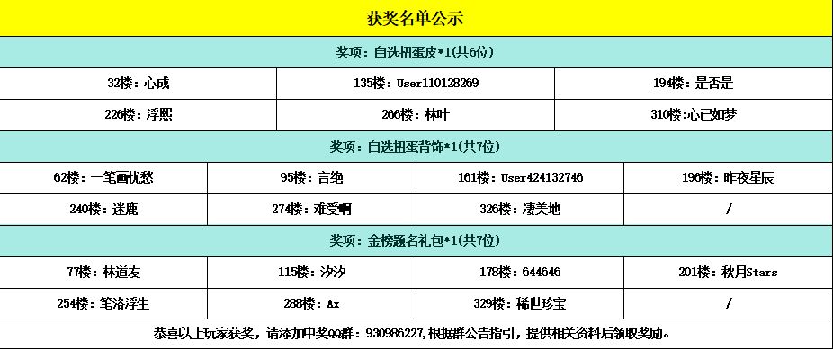 恭喜以下幸运的小骑士获得活动奖励,请中奖的小骑士添加获奖群:930986227,请加获奖群后,登记相关获奖信息,超过15个自然日未进群未登记视为放弃奖励~