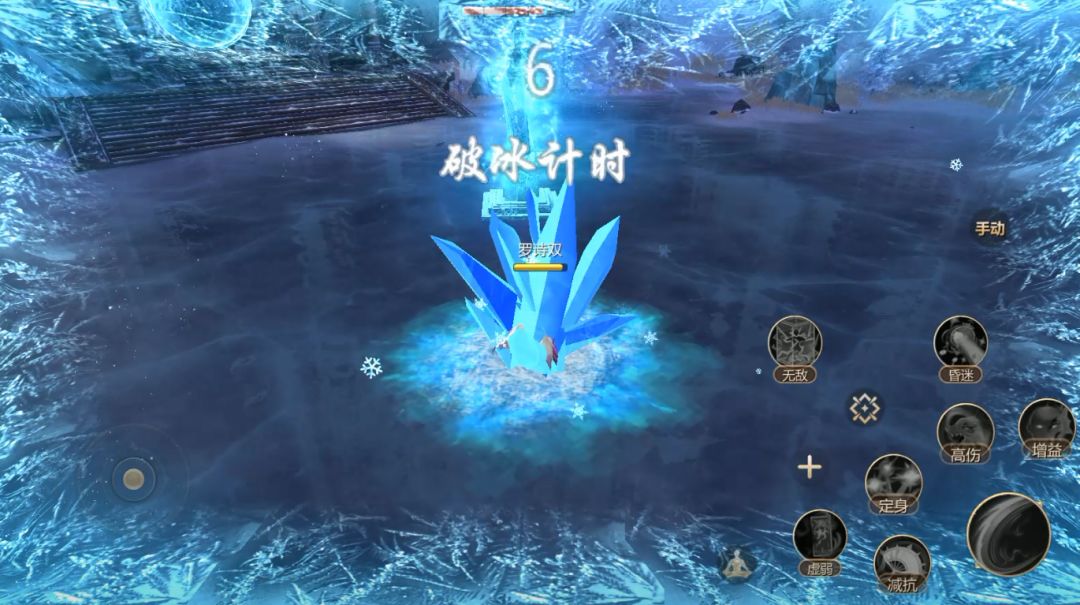 应对方法:玩家可以在开局时就击碎沉睡金盏周身的冰翼守护,将获得冰翼守护技能。在冰柱下降的过程中站在冰柱下方点击右侧【无敌】技能,即可开启冰翼接取冰柱,冰柱将直接消失。