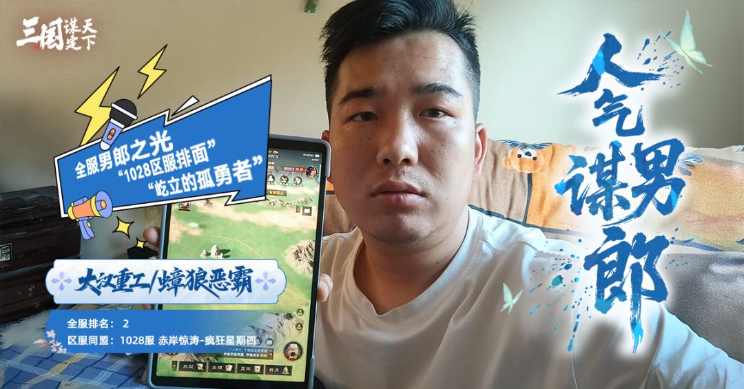 首先要特别有请的,是本次比赛的最大意外惊喜!作为唯一一位入围的男性选手,其本人非常低调神秘,未见公开平台拉票,却一路披荆斩棘、宠爱加身,引发许多玩家在贴吧、世界频道、同盟群为其自愿拉票宣传!面对如此实力铸就、民心所向,我们决定单独敕封其为本届活动的唯一“人气谋男郎”!并给与总票数第二对应奖励!他就是——