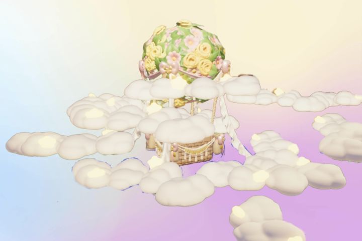 先把花团气球卡悬浮到空中合适的位置,然后把气球卡走,用云朵矮楼梯不规则的绕圈摆放,感觉差不多了就保存退出即可。