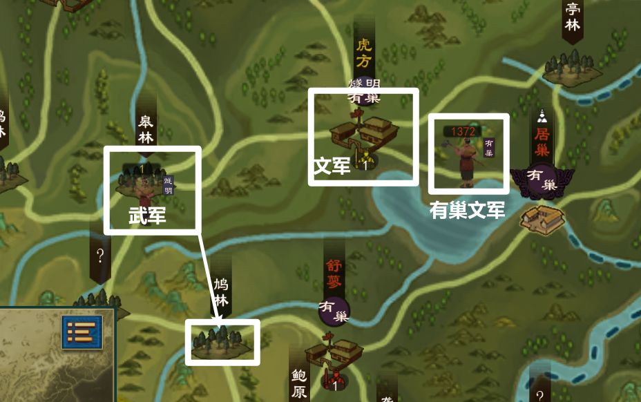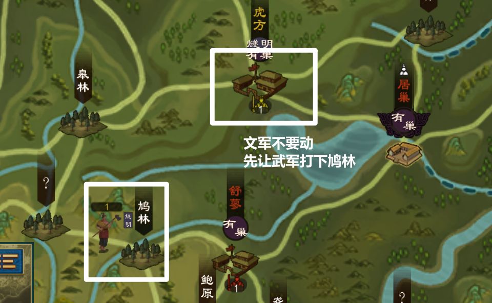 注意此时不要向居巢发起总攻。静静等待有巢文军的到来跟他打架。(记得存档)