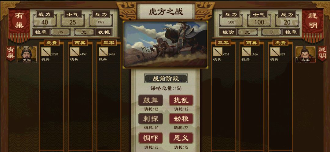 将有巢文军的士气降到25就停,然后用两次恩义。
