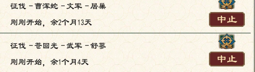 这个时候也要注意下我们的另外一只军队。他走到鸠林之前不要动大军向居巢发起总攻,这样会满足战争胜利的条件直接胜利。直接胜利后再宣战时间就赶不上在第一年内拿下巢皇了。