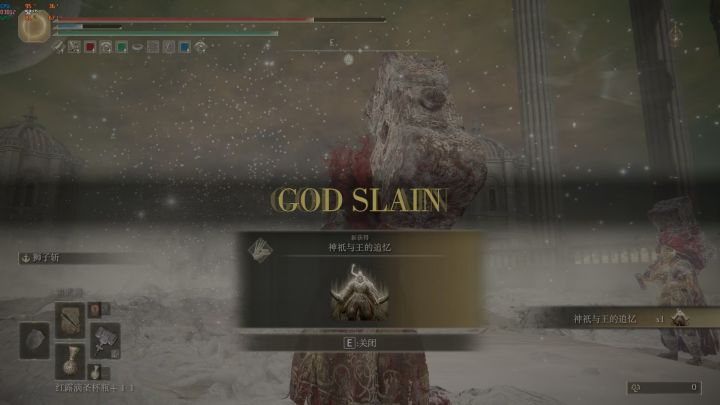 虽说游戏以无指引探索为核心,抛弃了传统开放世界满地图问号的任务指引系统,但其实宫崎英高的设计还是非常巧妙,远处淡淡发光的赐福指引,或是高处耸立的城堡,亦或是角落里不起眼的荧光,哪怕是联网状态下其他玩家留下的箴言或是血迹,都是在以最低程度的提示,来让玩家主动探索未知区域。我正是在这样若有若无的引导下,一步步深入交界地,不知不觉间便沉浸其中。与此同时战斗设计堪称魂系巅峰,从骑马斩龙到弑神之战,除了几只粪怪,大部分BOSS战兼具美学与压迫感,快慢刀法与立体箱庭地图考验策略,战胜强敌的成就感无与伦比。而哪怕从未接触过魂游的萌新也无需担心自己手残,得益于开放世界的自由度,游戏内有很多逃课打法或轮椅武器可以帮助新手更简单的完成目标,但是我其实还是更推荐在刚玩的时候不要过分依赖攻略,自己一点点的摸索以及靠自己努力背招硬生生讲boss击败的成就感是别的游戏难以带来的