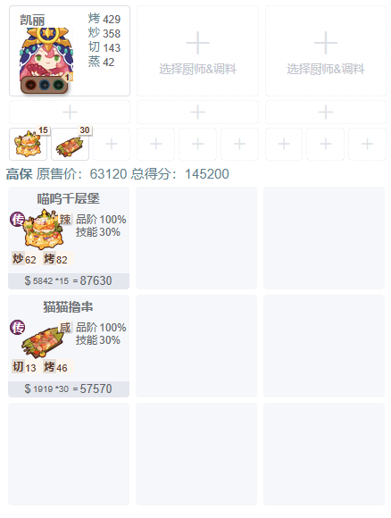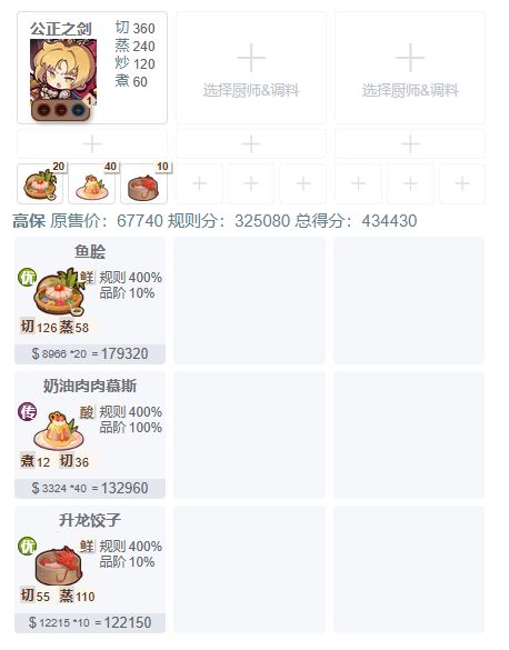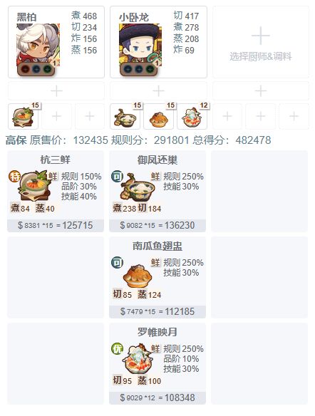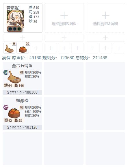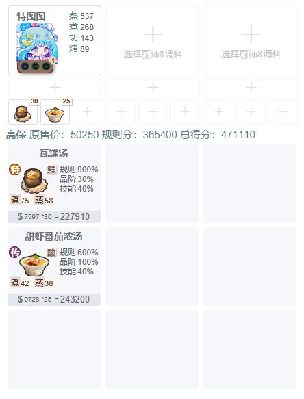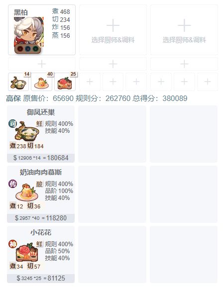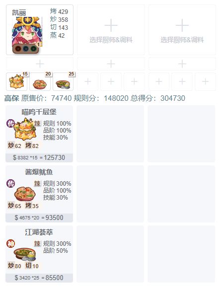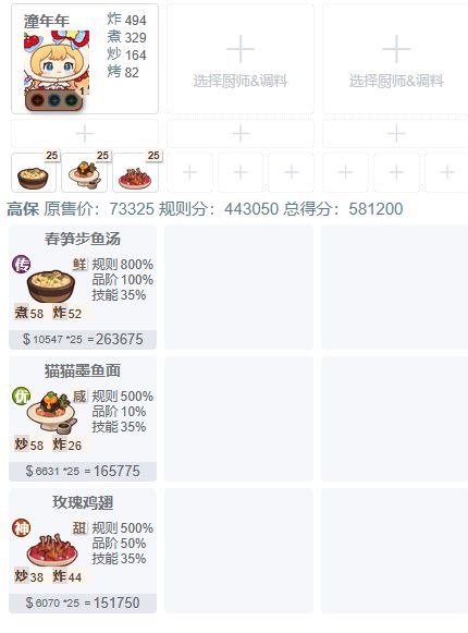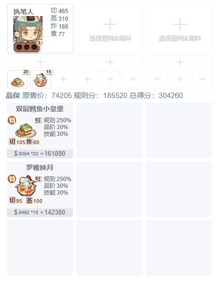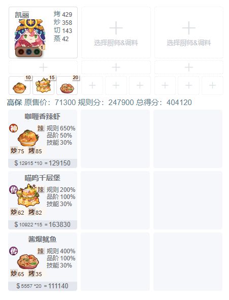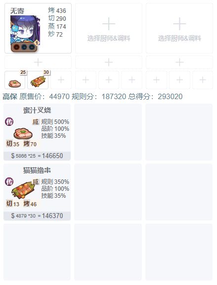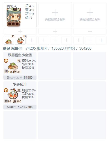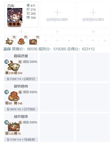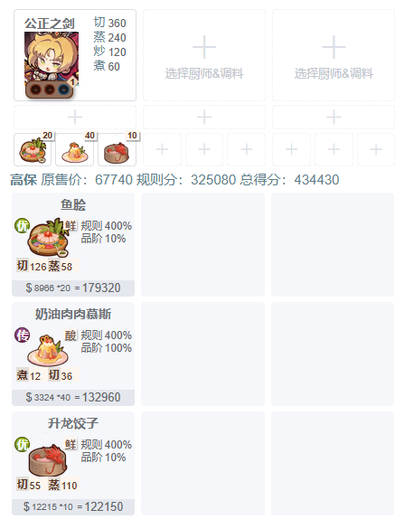 本作业注重点在无氪金厨、无修炼、无加成厨具、无遗玉和调料,在不用后厨菜的前提下用尽可能少的菜达成高保,因此必定会有着一定程度的收集度要求,不一定谁都抄的动,只适用于“万年高保”的懒狗,如果抄不动请自行寻找计算器计算。