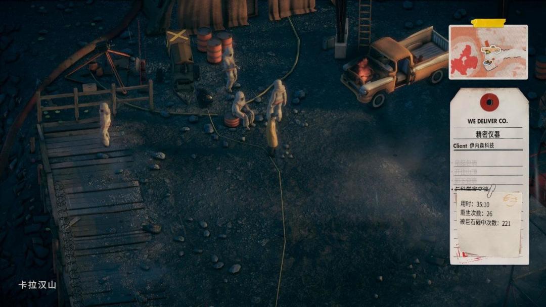 当然任务中就还是要老老实实开车,别想着去整什么花活,有些任务真的是走正常路线过关就已经很不容易,比如说把仪器送上山的任务我足足做了半个多小时才过去,山路之崎岖、过弯之艰辛让人在行进过程中直挠头,一路上还因为地震不断有山石滚落,咱们的皮卡根本扛不住几下就开始冒火了,时不时从悬崖跌落直接爆炸也是常有的事儿。当然最终能看到火山口(?)那壮美的景致,听科学家发表一通宇宙啊、人生啊之类的高论,也算是不负这艰辛,可以说十分尽兴了。