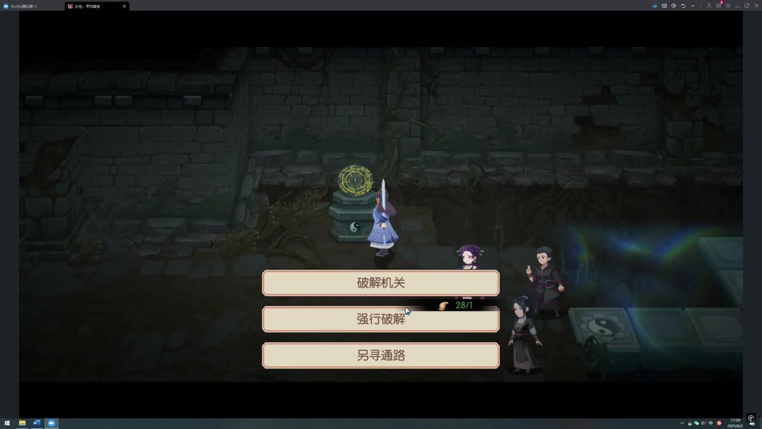 解除机关之后紫灵对我们信任有加,请我们入队,主线任务推进。我们继续向右,碰到两个自爆傀儡,第一只傀儡的临界血量为10454,第二只为11404,注意不要压太狠。接着我们继续向右,碰到两个机关,我们先解左侧机关,解法如下: