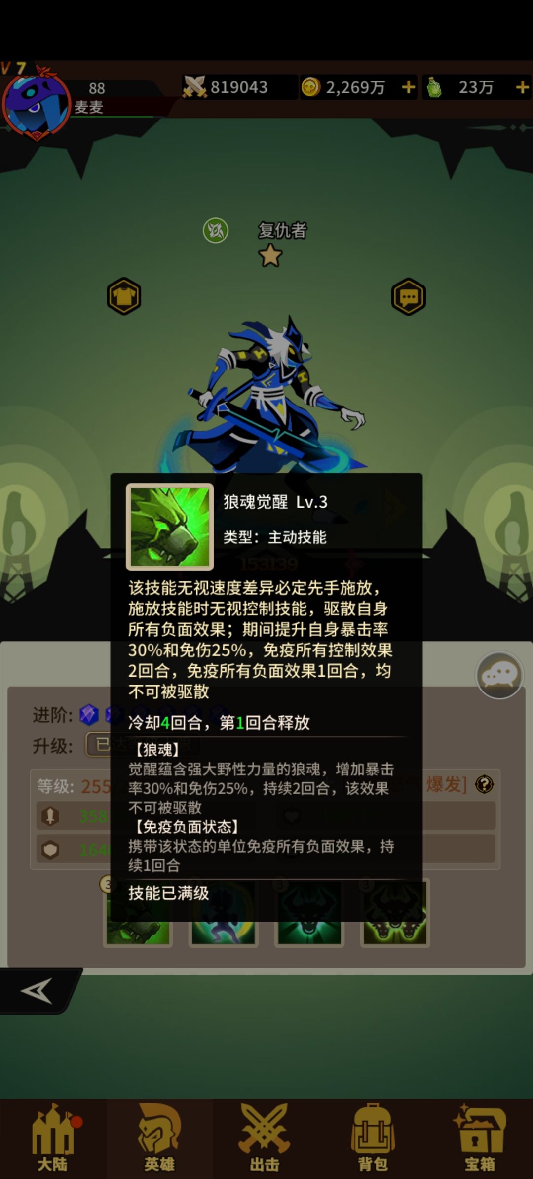 主c草系复仇者 1技能必定先手免控 被动叠伤害 3技能爆发