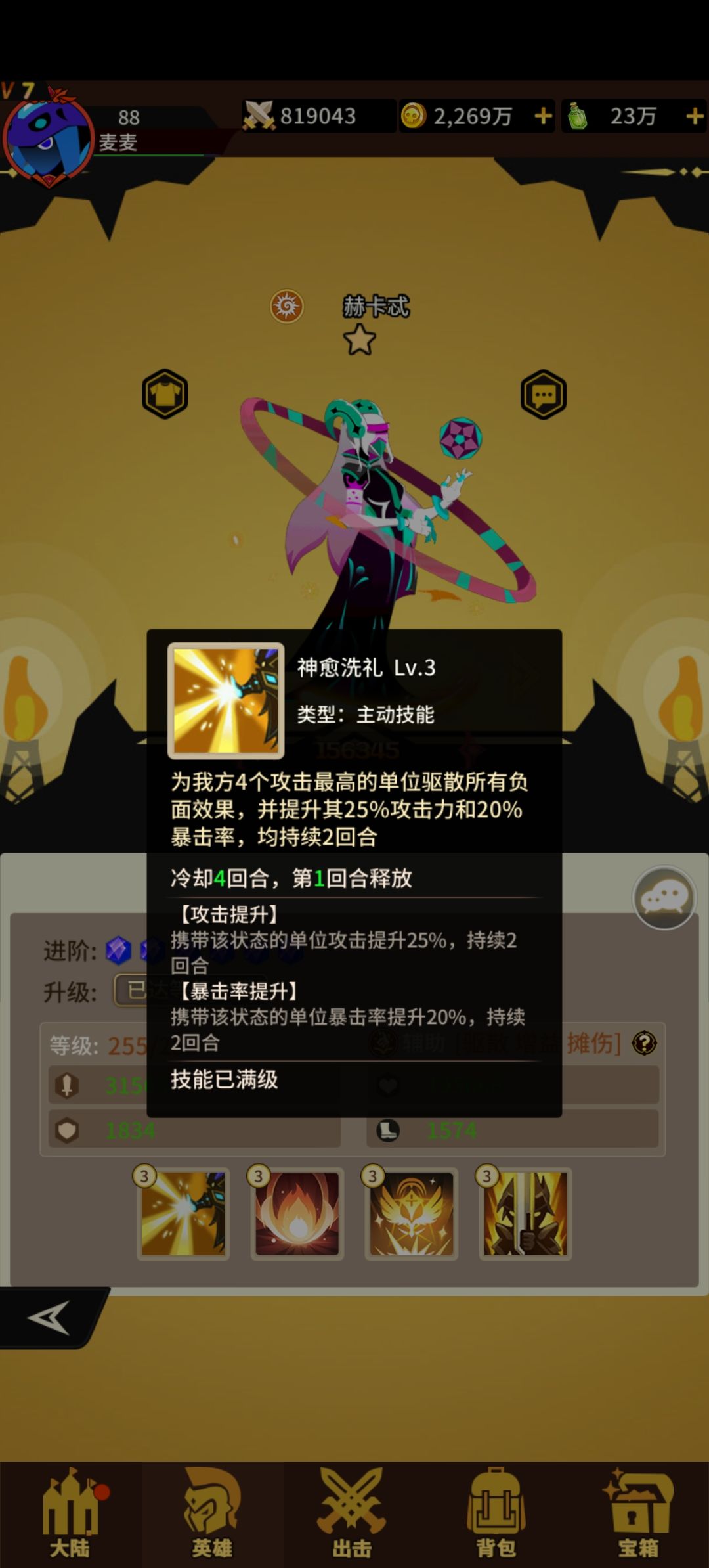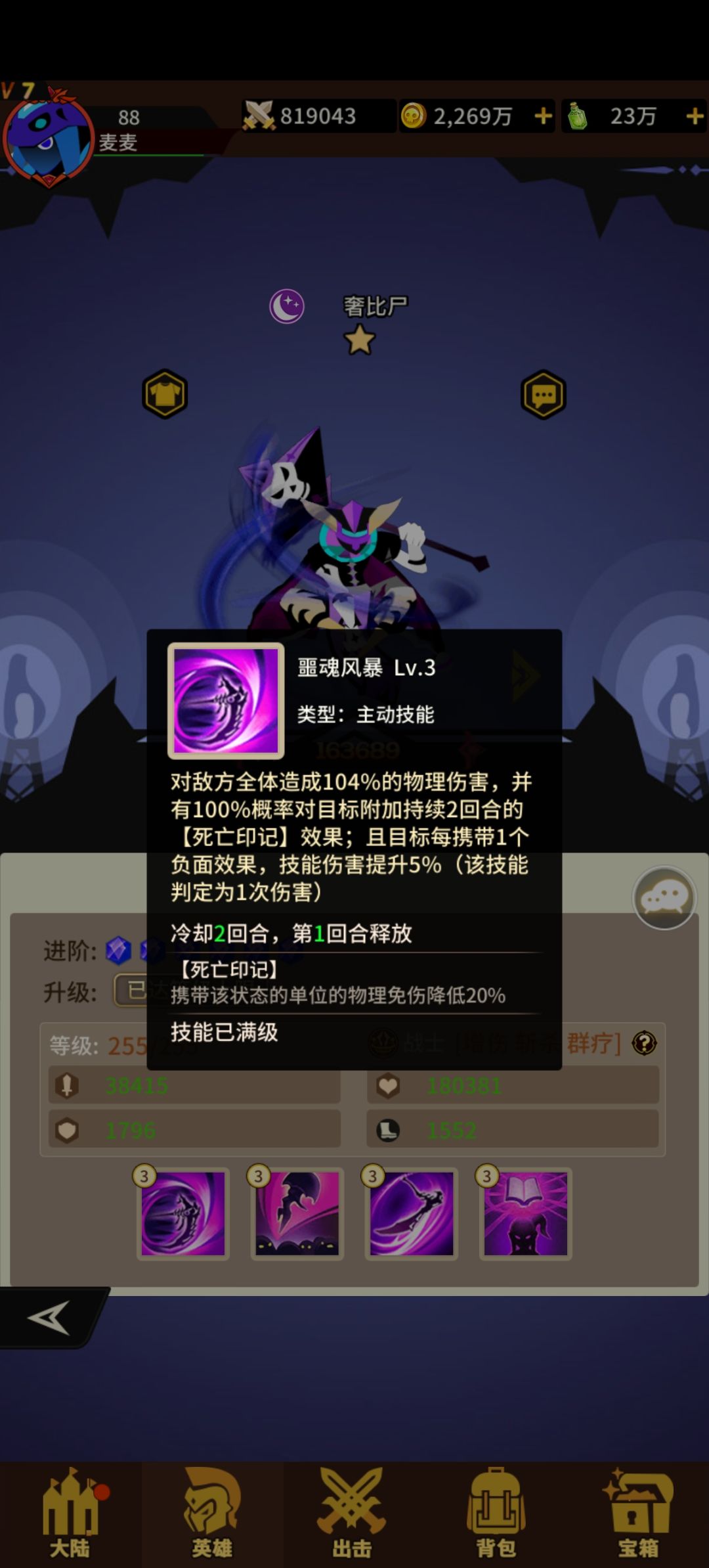 副c暗系奢比尸 1技能挂debuff 3技能斩杀 被动给全队回血