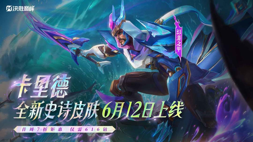 6月12日,卡里德全新史诗皮肤「幻海之甲」将正式上架【商城】,售价880钻石,首周享限时7折优惠!喜欢「卡里德」的友友们千万不要错过啦~