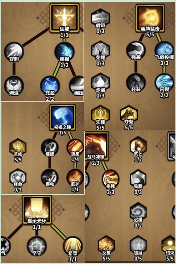 圣骑士三个圣化流派:“天威”,“咆哮”,“闪裂”。