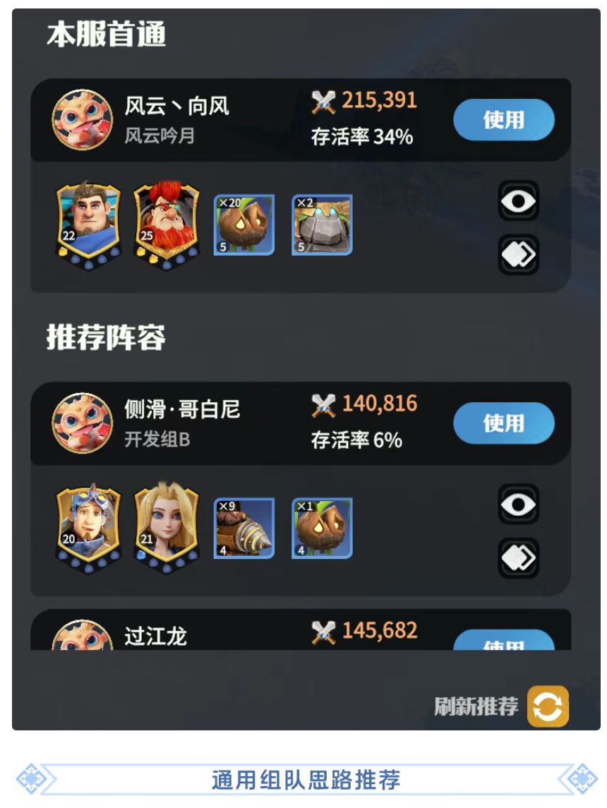此处可以使用之前开荒阵容推荐的通用阵容组合。如下: