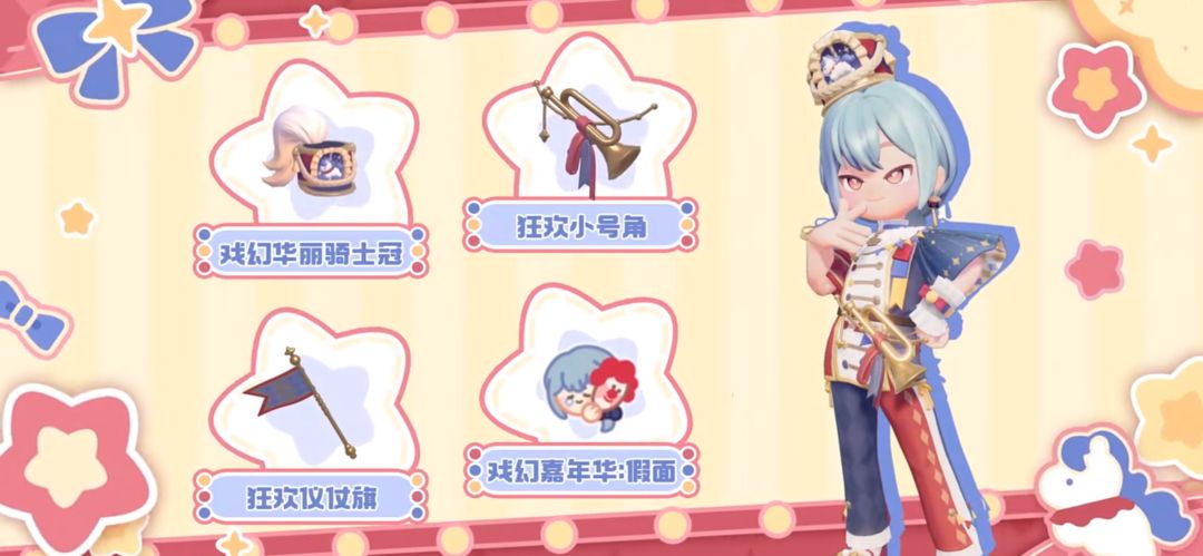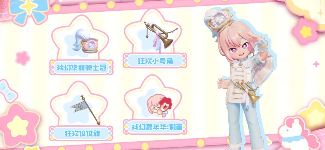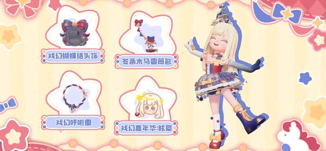 6月12日,风物奇珍主题展「戏幻嘉年华」即将登场。发展家使用展演通票即可抽取全新服饰套装“戏幻嘉年华·极乐”、“戏幻嘉年华·狂欢”。