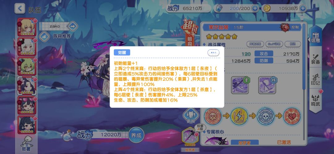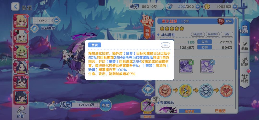 那么下面又有人问了(谁问你了),你暗队龙娘不是攻击最高那谁攻击最高,大家可能已经遗忘了,没错,就是我们暗队PVP的真神!茉尔丝塔!