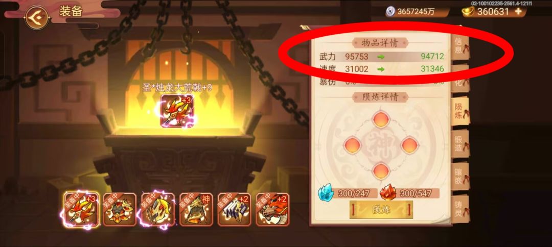 以前没注意今天一看烛龙大荒戟陨炼后武力不升反降了