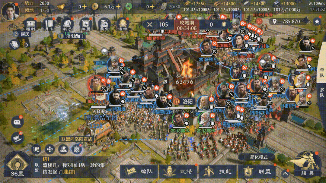 期间我们还要注意的是集结的规则:可以选择中立目标(城市、守城大将、南蛮先锋等)或敌方目标(敌方城市、敌方成员城池、敌方集结车等)发起集结进攻。
