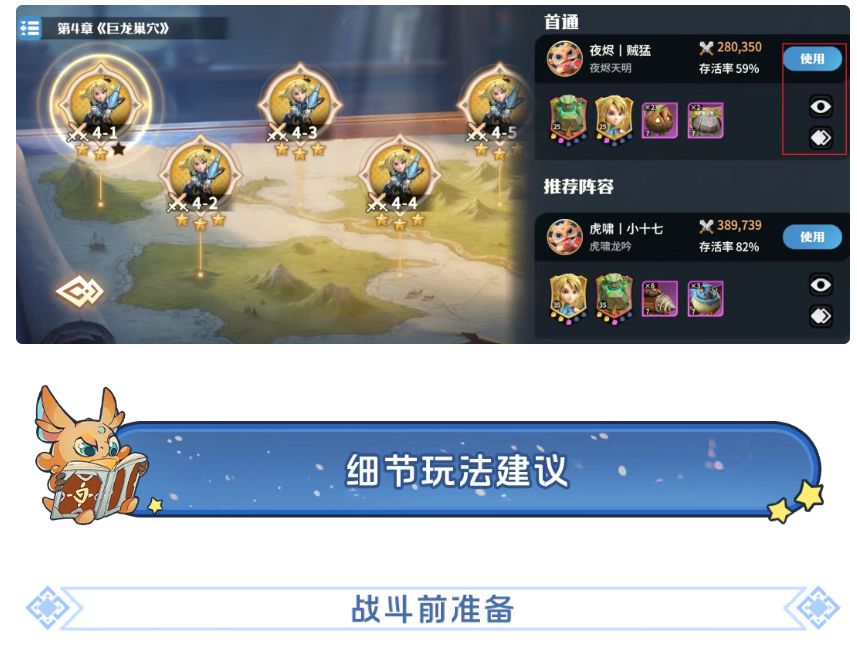 1. 推荐阵容:可以参考系统推荐队伍和首通玩家队伍。