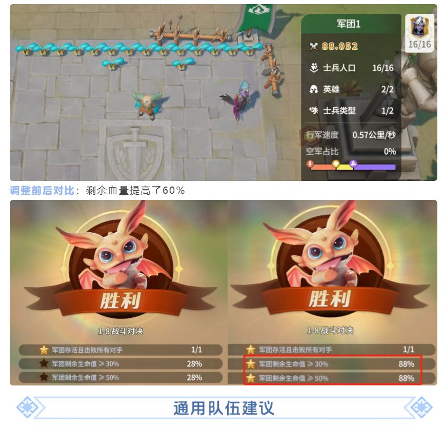 若敌方输出英雄搭配大量后排兵种,且关卡 3 星条件对队伍血量有严格要求,正面硬刚的阵容难以维持血线,可以获胜,但是无法完成3星通关目标。