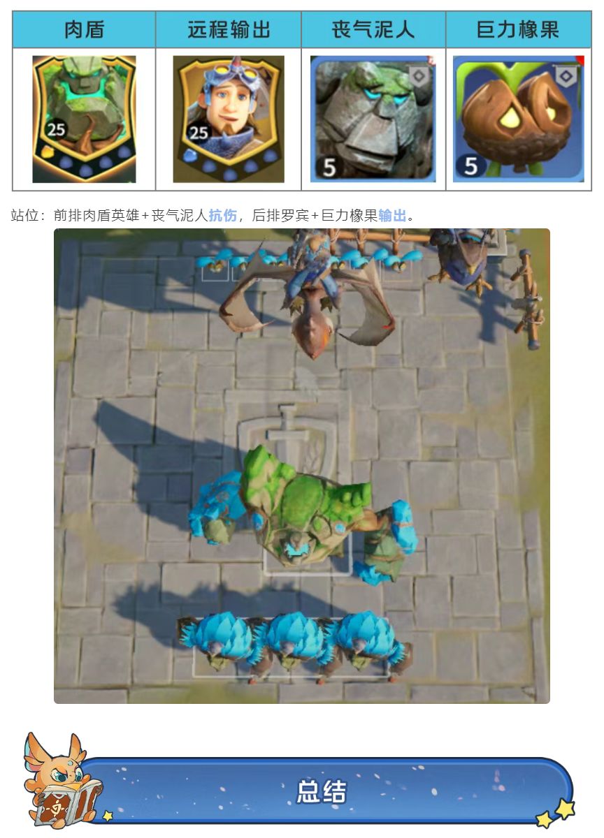 建议站位:召唤英雄的召唤物放在前排抗伤,刺客对位地方脆皮后排输出,进行快速切入,兵种使用后排输出兵种,辅助输出。