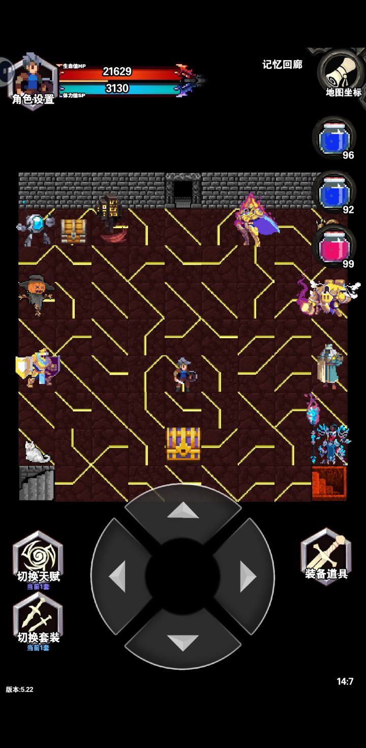旁边宝箱需要时间准备,获得一件装备,获得的装备与层数有关;
